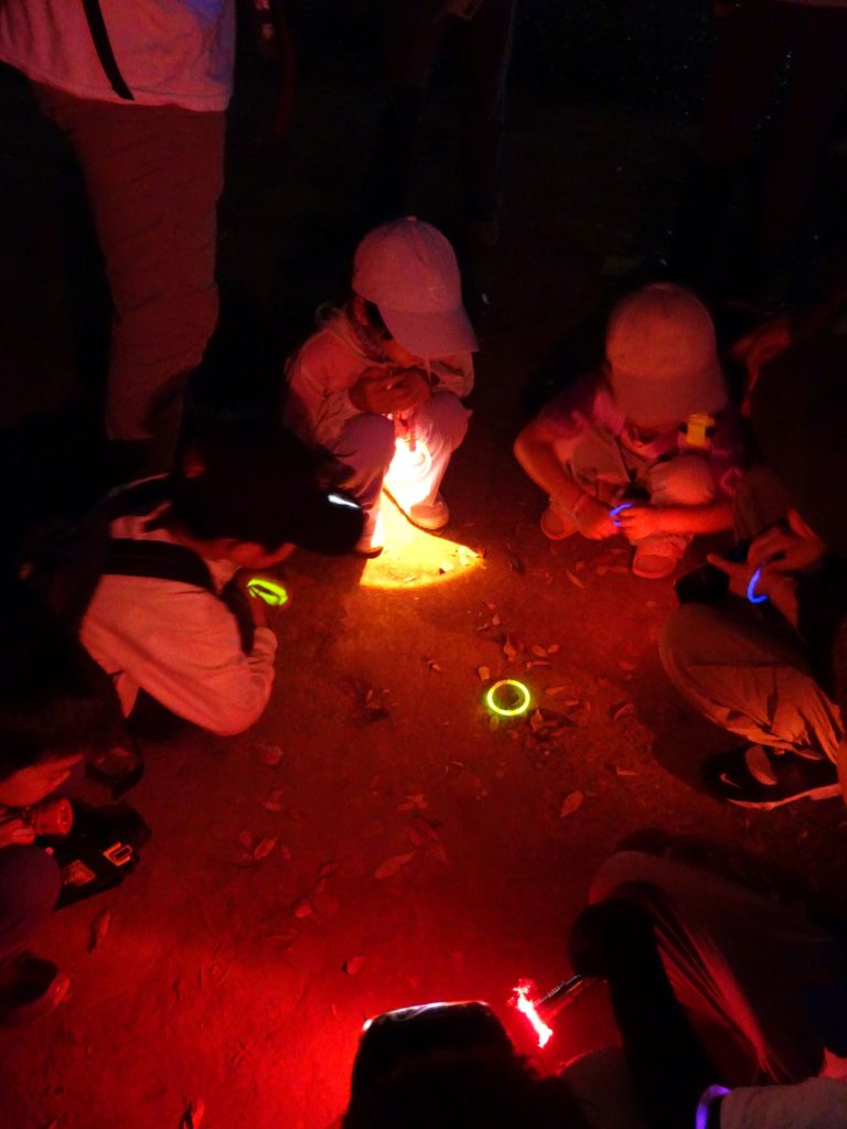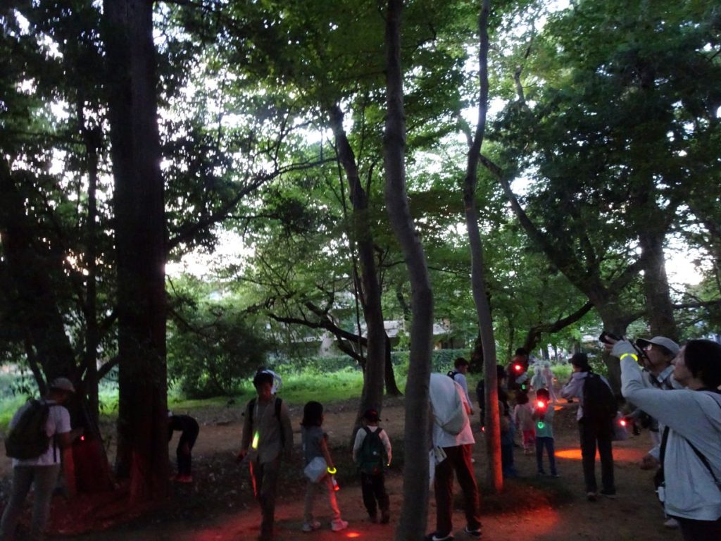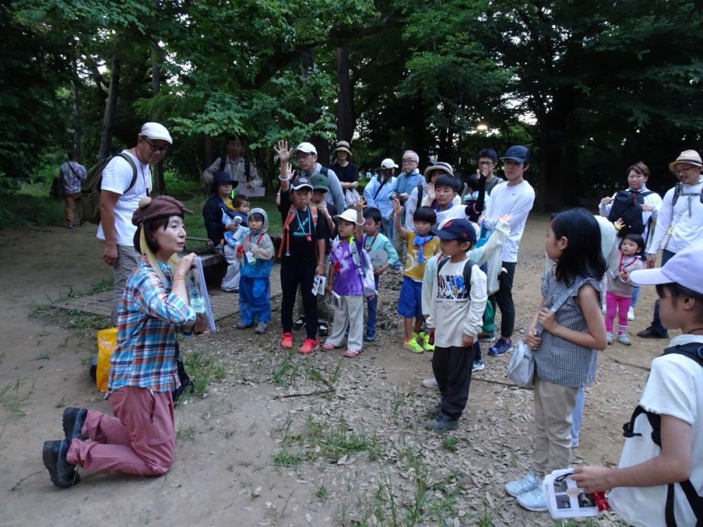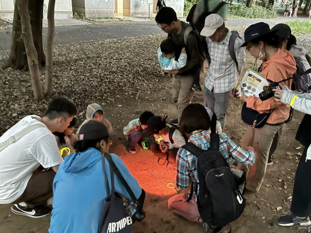 ここ2年開催してきた夜のセミの羽化観察会。今回は新たな試みとしてセミの幼虫の追跡を観察に取り入れ、セミの幼虫が土の中から出てきて木に辿り着くまでの地面での幼虫の動きを追ってみました。例年よりも開始時刻を早めボート乗り場に集合し、すぐに第二公園へ移動し第二公園で観察会をスタート。最初にセミの一生を学ぶセミの一生クイズを参加型で行いました。そして4班に分かれセミの幼虫探しからスタート!